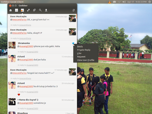 Okay, jadi itu sahaja perkongsian ilmu mengenai Gwibber dalam post kali ini. Untuk pengetahuan semua, Mus juga masih lagi mentah dalam menggunakan aplikasi ini. Mungkin sebahagian dari anda bakal "mengutuk" aplikasi ini kerana Mus sendiri keliru untuk menggunakan aplikasi ini pada pertama kalinya. Tapi bagi Mus, aplikasi ini lebih memudahkan kerana Mus tidak perlu lagi hendak memasukkan segala maklumat login bila nak online...
